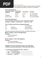 VERB TO BE: Affirmative & Negative