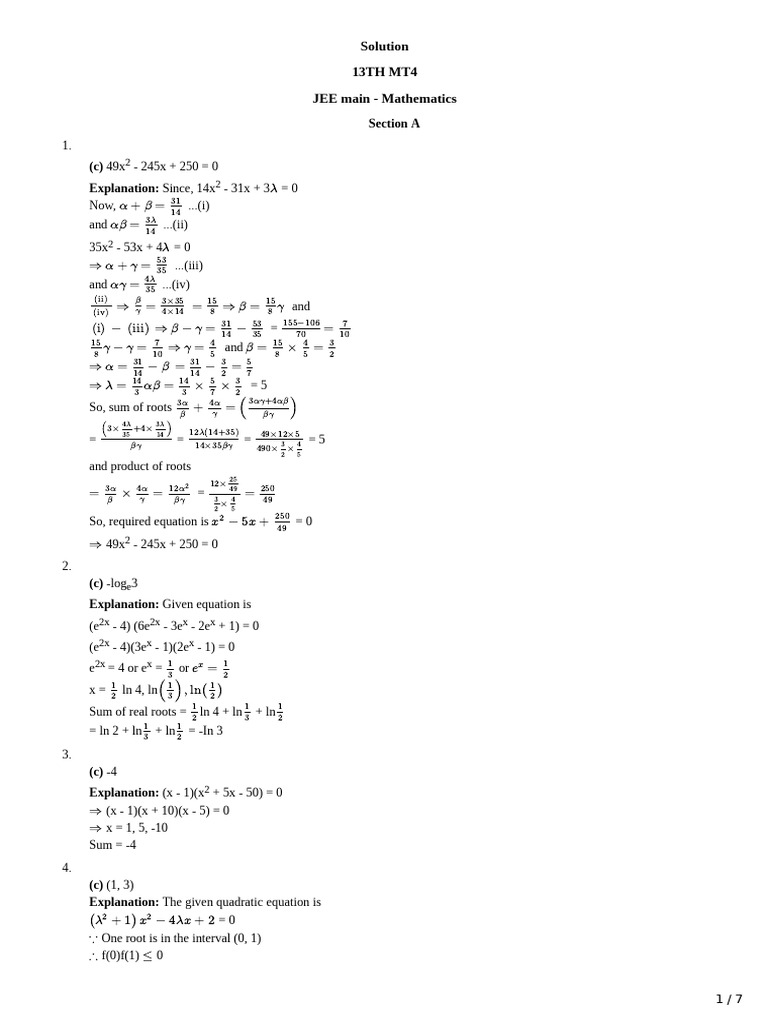 Explanation: (x - 1)(x2 + 5x - 50) = 0