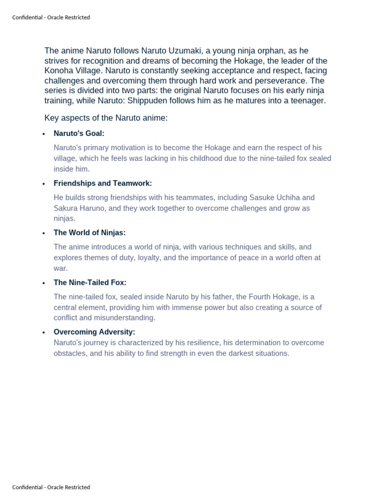 Konoha Village. Naruto is constantly seeking acceptance and respect, facing