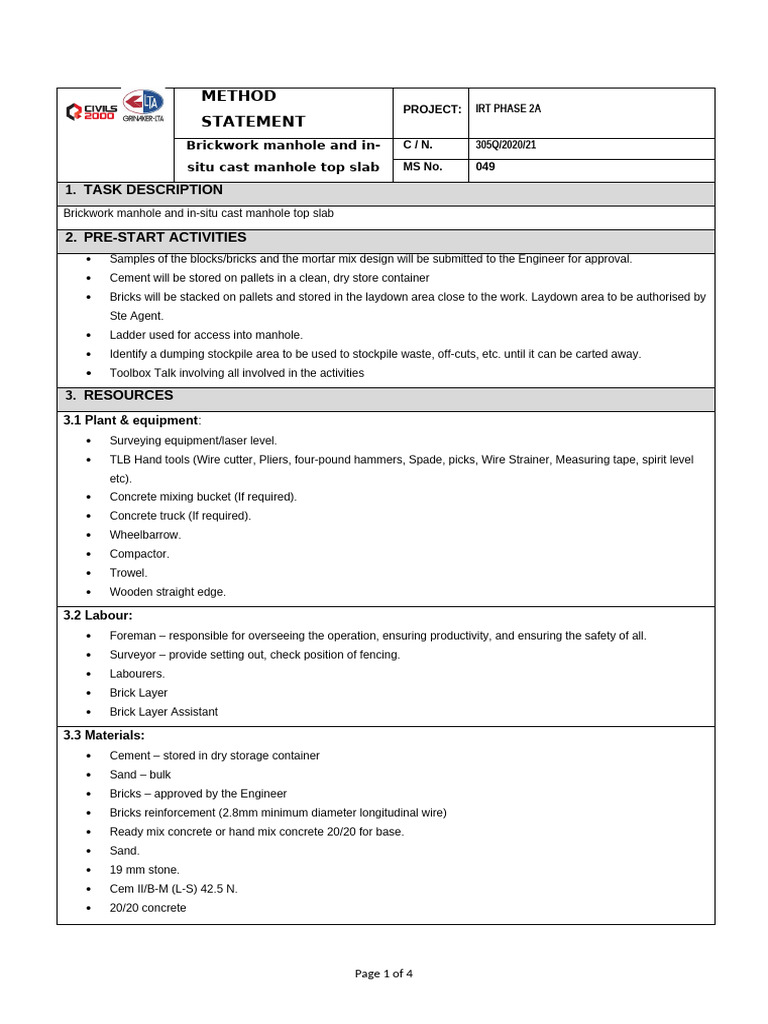 Brickwork manhole and in-situ cast manhole top slab