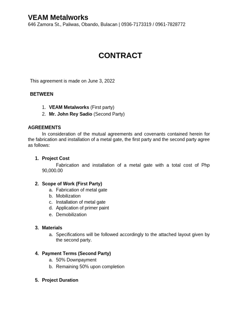 Fabrication and installation of a metal gate with a total cost of Php