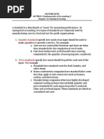 o A standard is a benchmark or “norm” for measuring performance. In managerial accounting, standards relate to