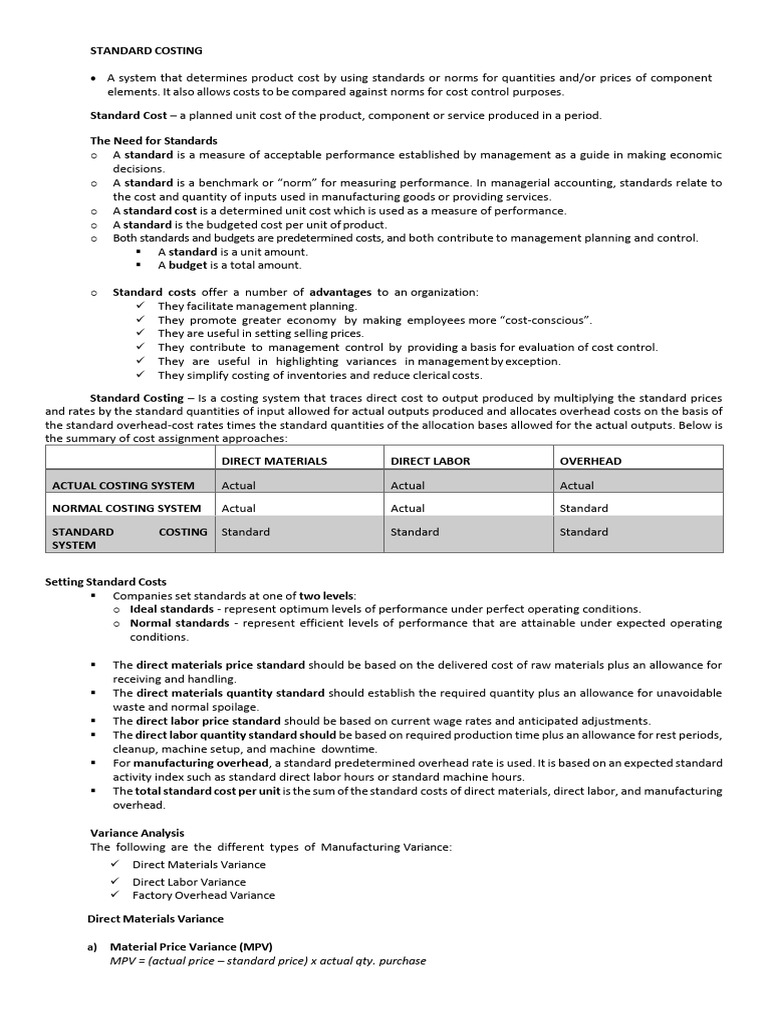 o A standard cost is a determined unit cost which is used as a measure of performance.