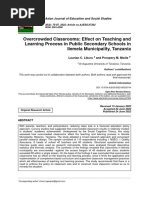 The primary purpose of this study is to investigate the effect of class size and overpopulation on