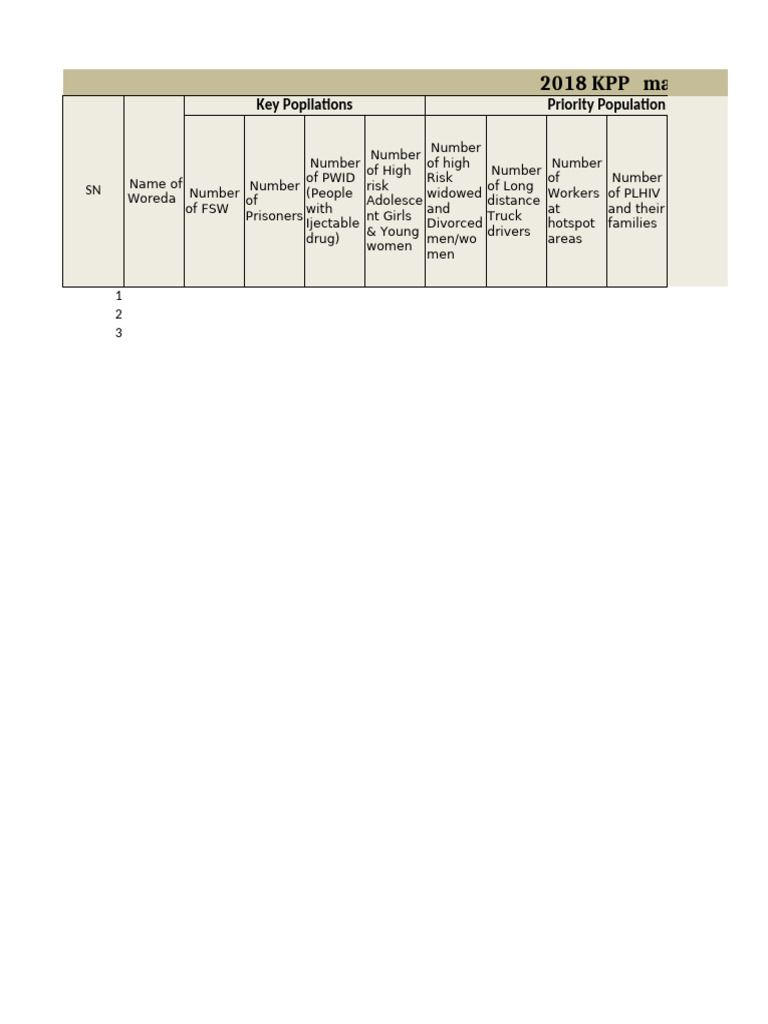 KPP mapping format for Zone/ woredas and towns