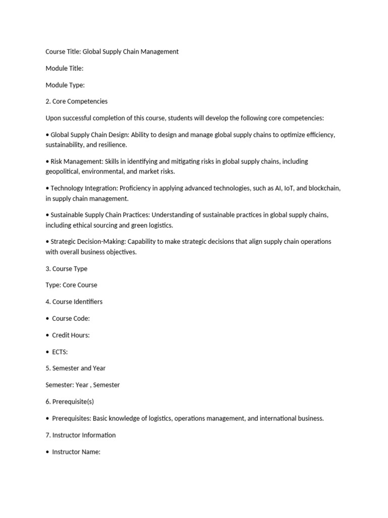 managing global supply chains in the modern business environment. The course covers key topics such