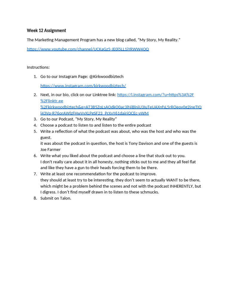 5. Write a reflection of what the podcast was about, who was the host and who was the
