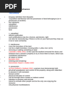 b. Adverse Possession i. Intro When one possesses anothers property in a manner that is exlsuive, visible, continuous, and without the owners permission for a period defined by state statute, the rules in force transfer title from the title holder (the true or record owner) to the adverse possessor. Magically transforms possessors into owners and prevents true owners from bringing suit for ejectment Protects justified expectations created by long-standing possession Burden of Proof is clear and convincing ii. Elements 1. Actual Possession: possessor must physically occupy the premises in some manner Ordinary use to which the land is capable and such as an owner would make of it. (can be shown by enclosure) If have color of title, can acquire possession of entire property described by deed even if only physically possess one part. Some states require improvements Some states enclosure 2. Open and Notorious: so visible that a reasonable owner would/should have known about it 3. Exclusive: use is of a type that would be expected of a titleholder and possession cannot be shared with the true holder. 4. Continuous: possession must continue w/o significant disruption Seasonal use: must exercise control over the property in the ways customarily pursued by owners of that type of property, so depends on character of property Tacking: succeeding periods of possession by different persons may be added together most states require successors to be in privity with previous possessors (meaning transferred/purported to transfer title of the property to the successor). 5. Adverse or Hostile: must treat property as own and use without the record owners permission (usually objective test based on possession, state of mind is irrelevant, lack or legal possession Claim of Right) Some states require subjective tests: a) Intentional dispossession (must show intention to oust true owner) Vast majority reject test b/c rewards wrongdoing b) Good faith only innocent possessors who mistakenly occupy property owned by someone else- in some states reduces statutory length of time 6. For the Statutory Period: periods vary widely from state to state Disability statutes: true owners incompetence extends statute of