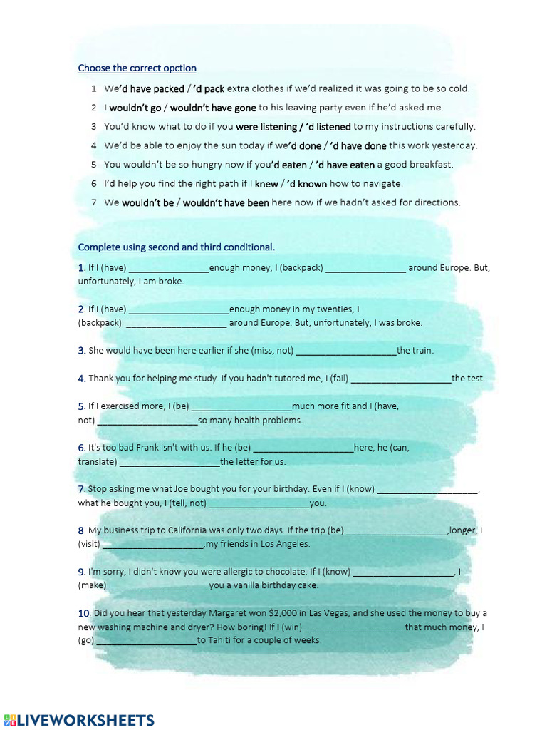 Complete using second and third conditional.