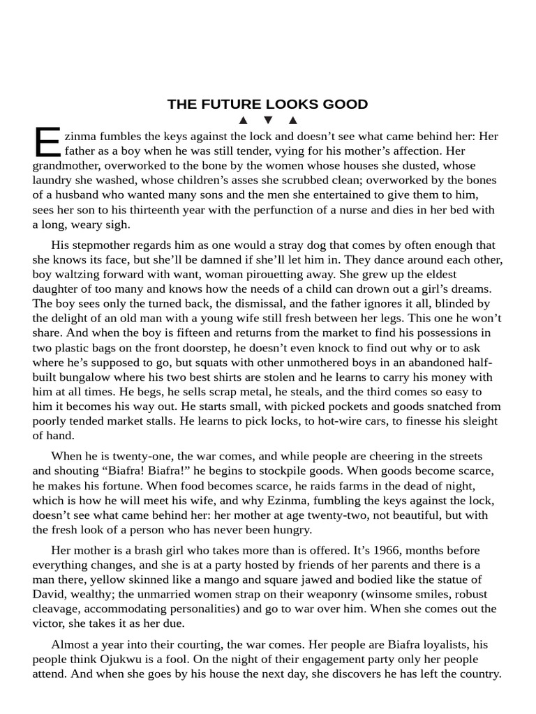 wad up tissues and deal with it. Ezinma grows up yearning for her sister’s affection.