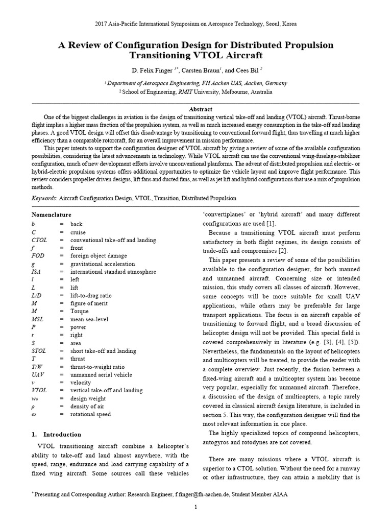 strengths and weaknesses of each configuration. VTOL systems are even considered.