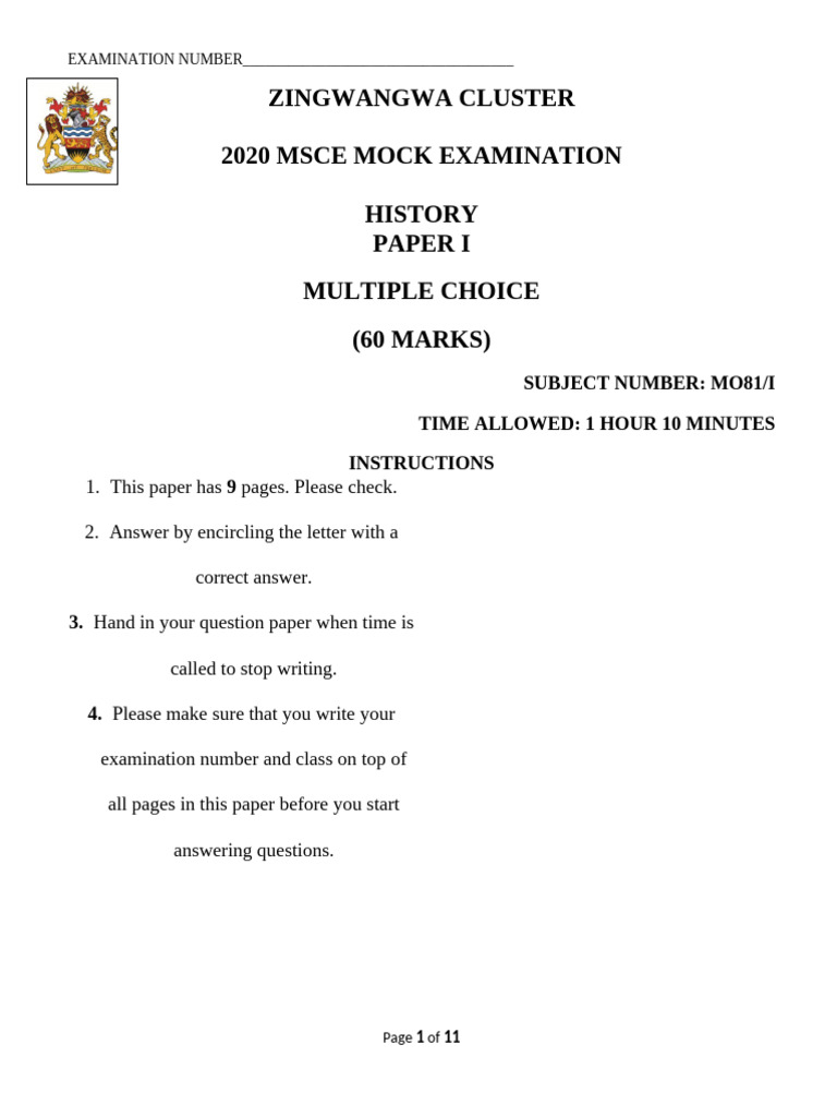 TIME ALLOWED: 1 HOUR 10 MINUTES