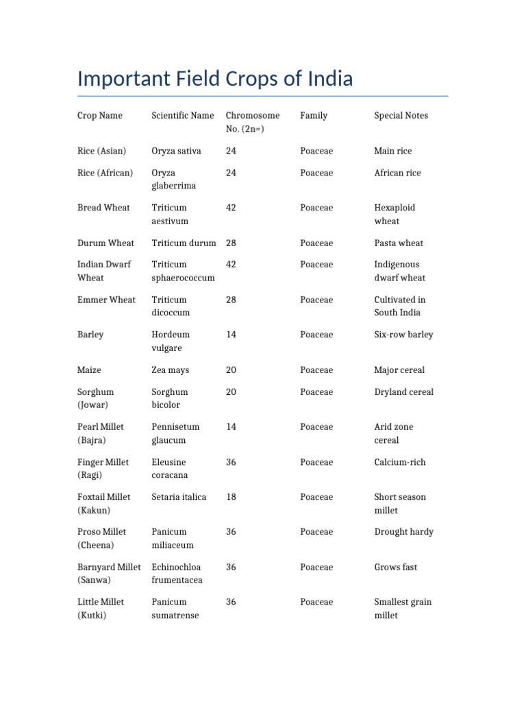 Important Field Crops of India