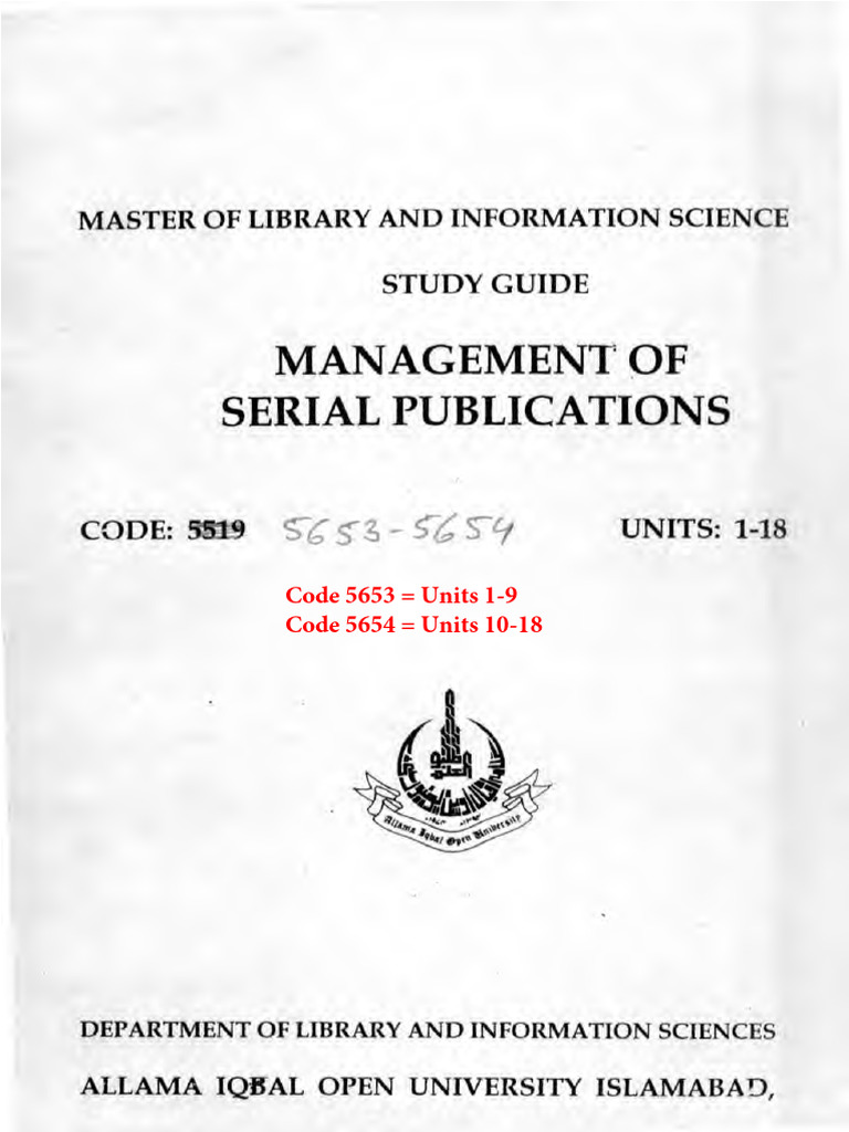 The document provides a coding system for units, where Code 5653 corresponds to Units 1-9 and Code 5654 corresponds to Units 10-18. This coding system likely serves to categorize or organize content related to these units. No additional context or information is provided.