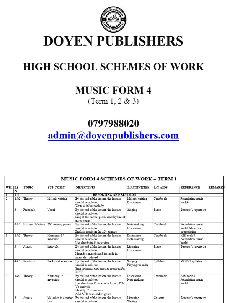 MUSIC FORM 4 SCHEMES OF WORK – TERM 1