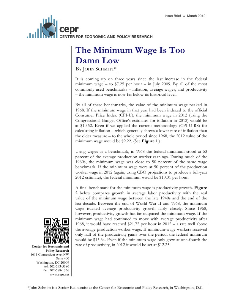 CEPR The Minimum Wage Is Too Damn Low