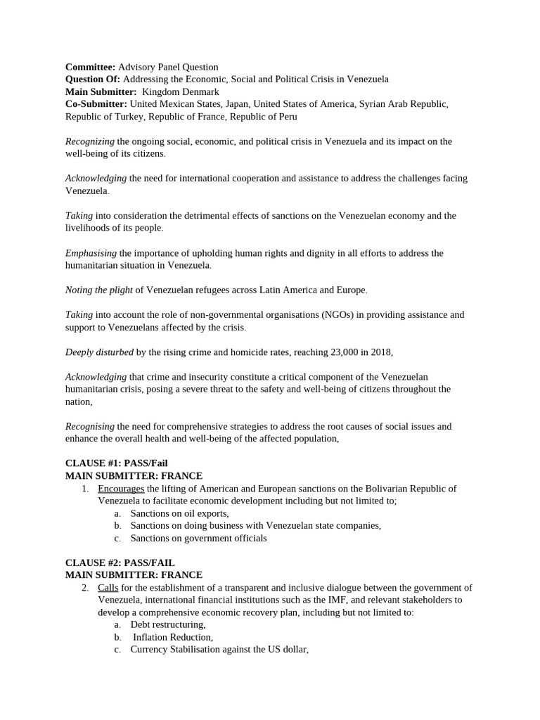 Question Of: Addressing the Economic, Social and Political Crisis in Venezuela