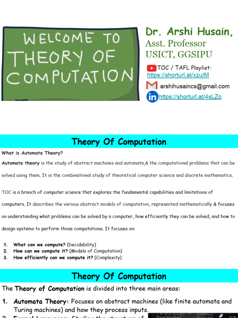 Automata theory is the study of abstract machines and automata,& the computational problems that can be