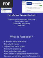 FACEBOOK PRIVACY POLICY: You decide how much information you feel comfortable sharing on Facebook and you control how it is distributed through your privacy settings You can control how you share information with those third-party applications and websites through your application settings and you can learn more about how information is shared with them on our About Platform page. MARKETING STRATEGIES: Join groups Comment on other profiles Announce events Stay informed on your industry Share industry news Provide Customer Service Client Oversight PR Tool Send Virtual Gifts Advertise On Facebook
