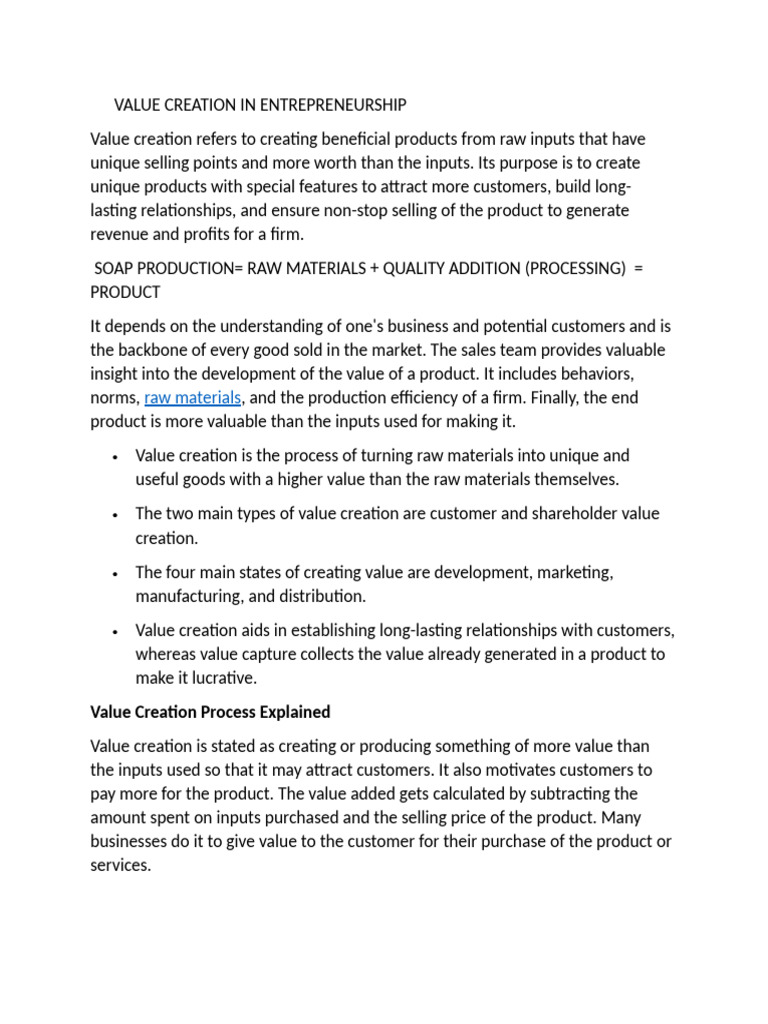 Value creation is the process of turning raw materials into unique and