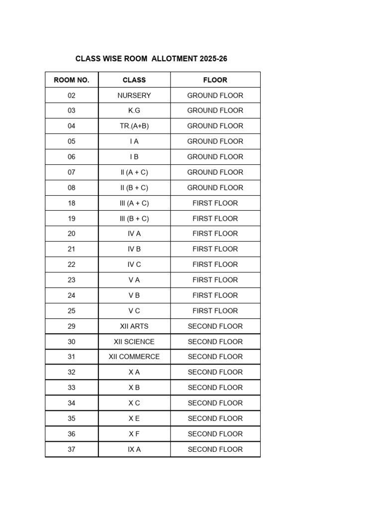 CLASS WISE ROOM ALLOTMENT 2025-26