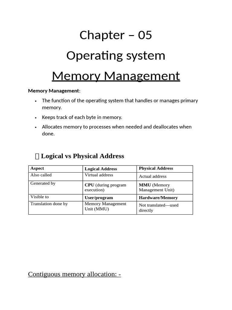 Programs use logical addresses (like "start from 0").