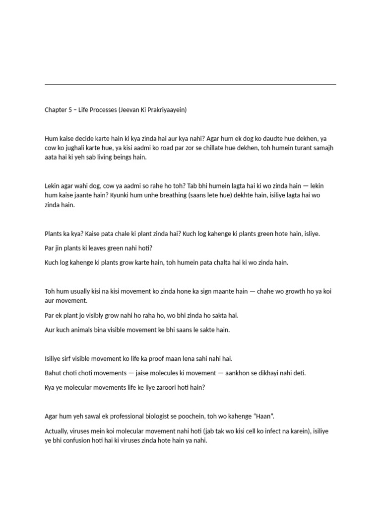 Chapter 5 – Life Processes (Jeevan Ki Prakriyaayein)