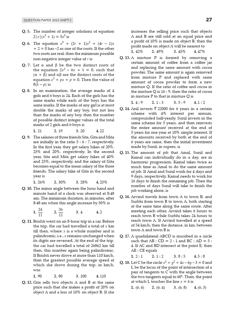 QUESTION PAPER 2023 SHIFT-1 27