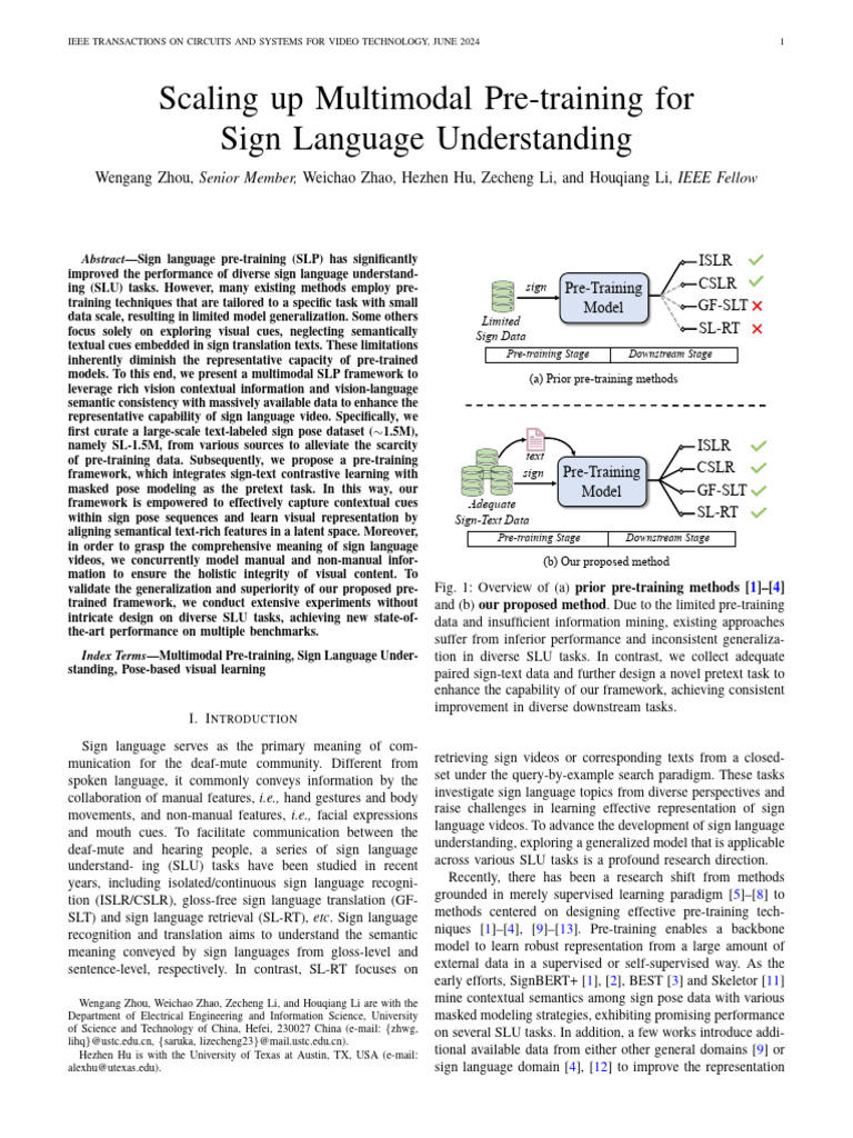sentence generation and cross-modal reranking for sign language trans- Science and Technology of China (USTC), in 2023.