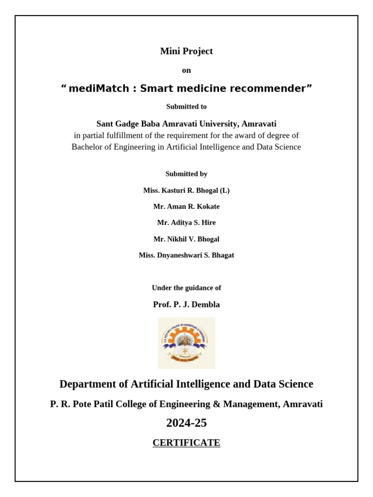 J. Dembla, Dept. of Artificial Intelligence and Data Science, P. R. Pote Patil
