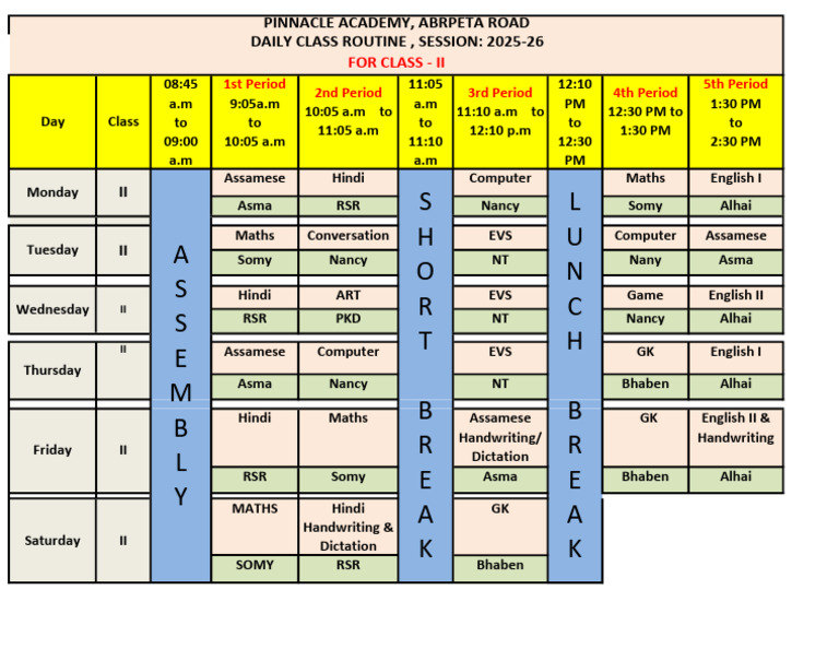 DAILY CLASS ROUTINE , SESSION: 2025-26
