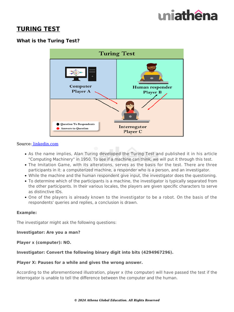 According to the aforementioned illustration, player x (the computer) will have passed the test if the