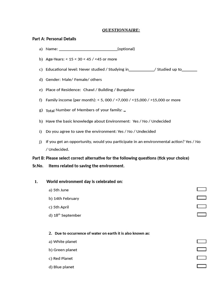 Part B: Please select correct alternative for the following questions (tick your choice)