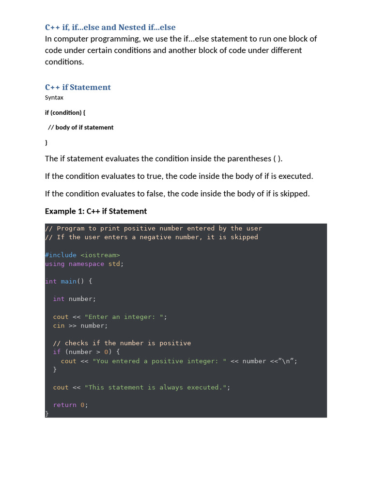 C++ if, if...else and Nested if...