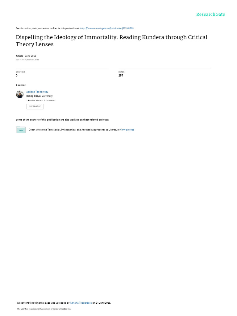 Dispelling the Ideology of Immortality. Reading Kundera through Critical