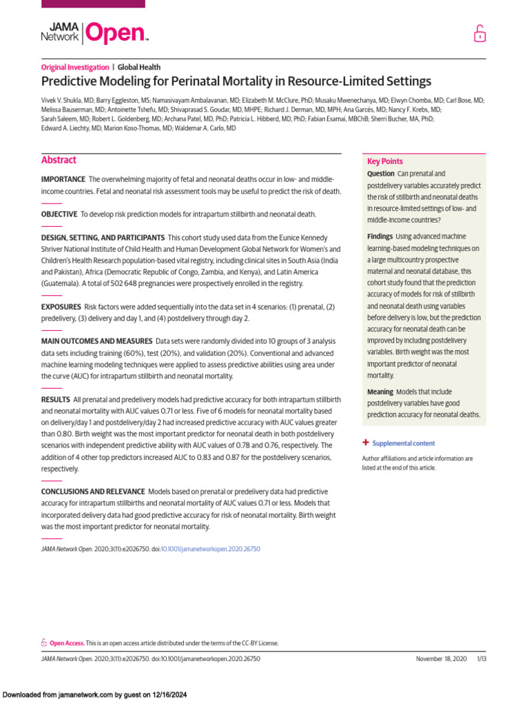 16. Houweling TAJ, van Klaveren D, Das S, et al. A prediction model for neonatal mortality in low- and middle-