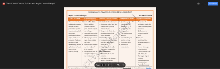 Class 6 Math Chapter 2- Lines and Angles Lesson Plan.