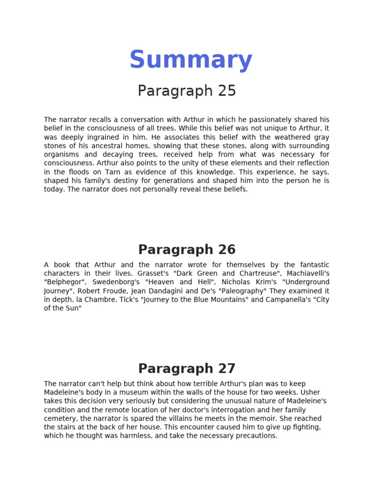 After several days of mourning, the narrator notices a significant change in Asher's mental state. He was