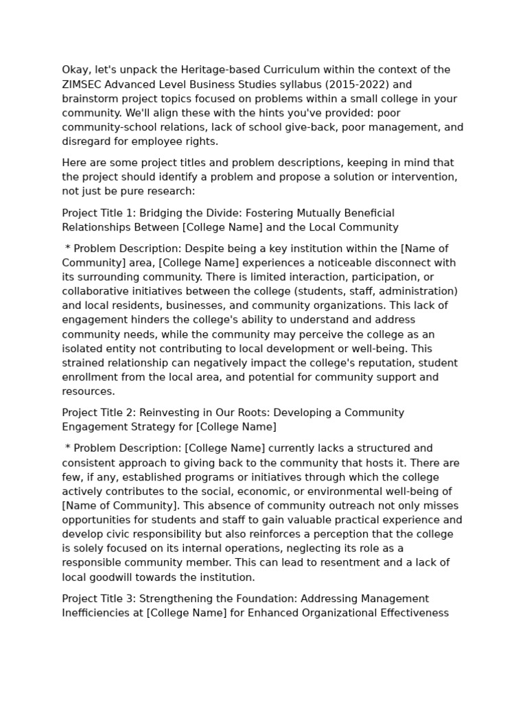 brainstorm project topics focused on problems within a small college in your