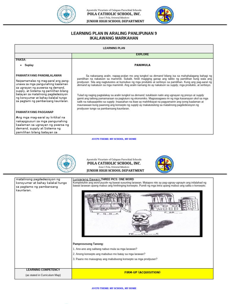 LEARNING PLAN IN ARALING PANLIPUNAN 9