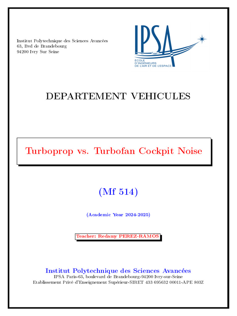 This project on Aeroacoustics aims at comparing the cockpit noise in two dierent types of aircraft,