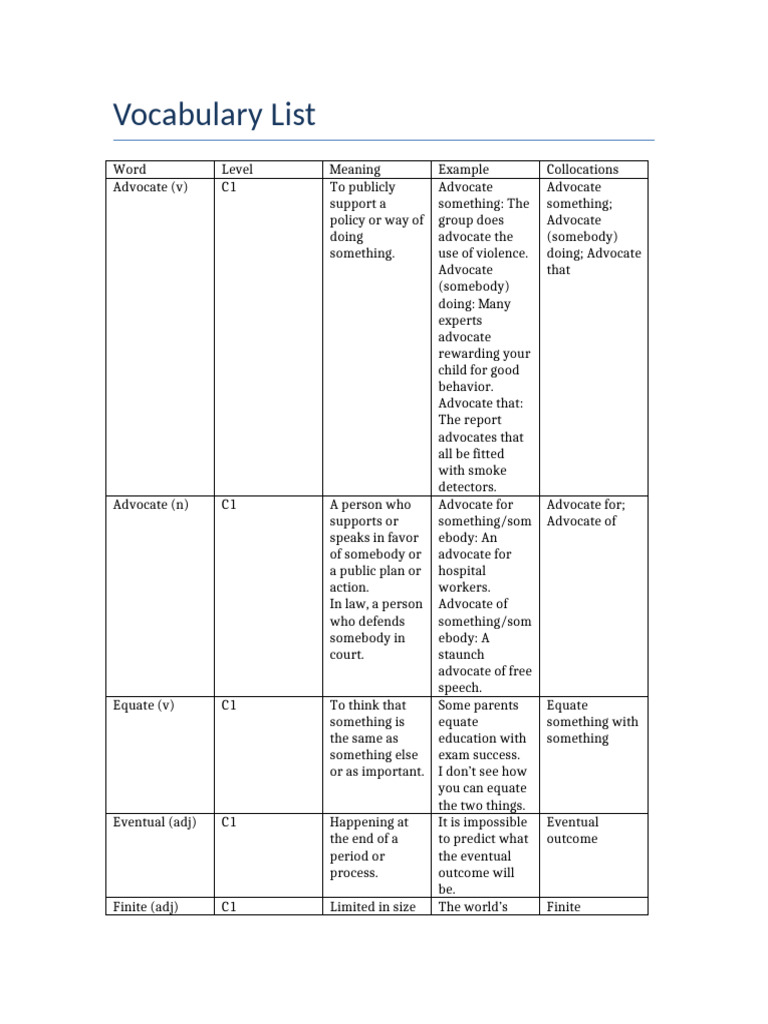 Advocate (n) C1 A person who Advocate for Advocate for;