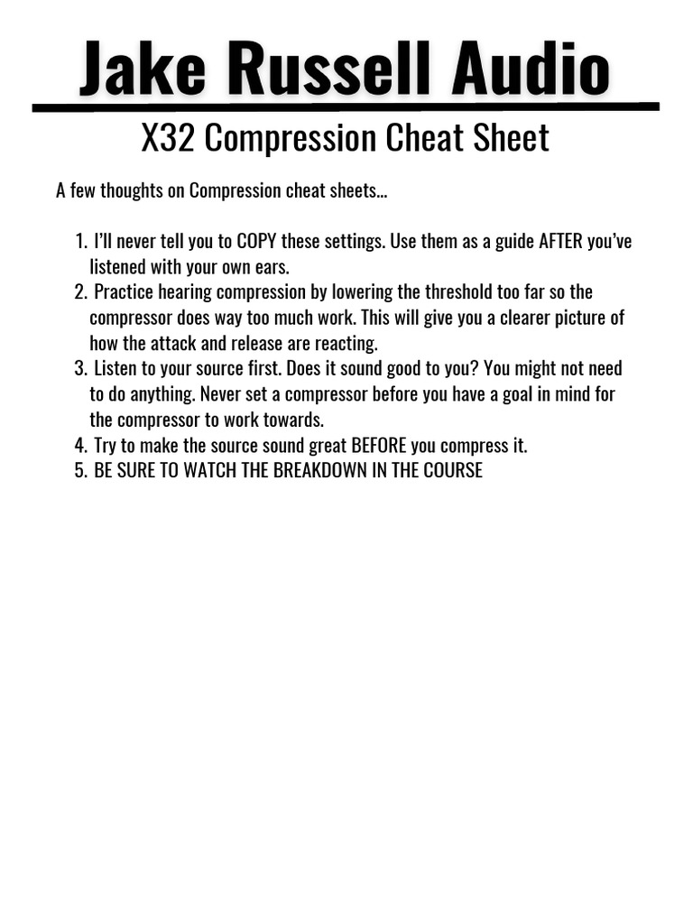 X32 Compression Cheat Sheet