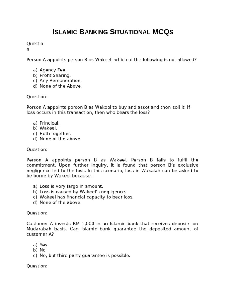 Mr. Ahmed comes to an Islamic bank counter and wants to open a bank