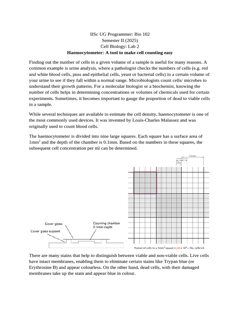 Materials Required: Haemocytometer, Cover slips, 70% Ethanol, Uniform cell suspension