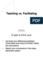 a "sage on the stage" manner. Facilitation usually involves a “guide on the side” who asks