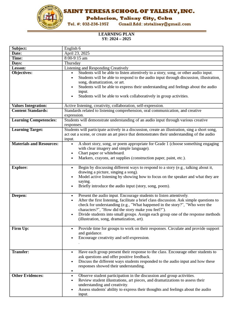 Values Integration: Active listening, creativity, collaboration, self-expression.