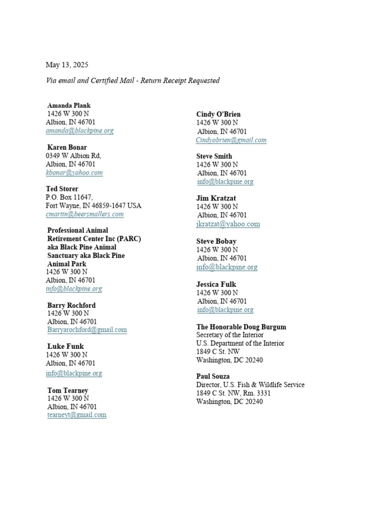 altered in any manner. Please confirm by 5 p.m. (ET) May 19th 2025, that PARC, its staff,