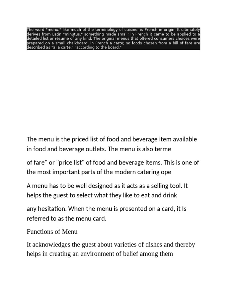 The word "menu," like much of the terminology of cuisine, is French in origin.