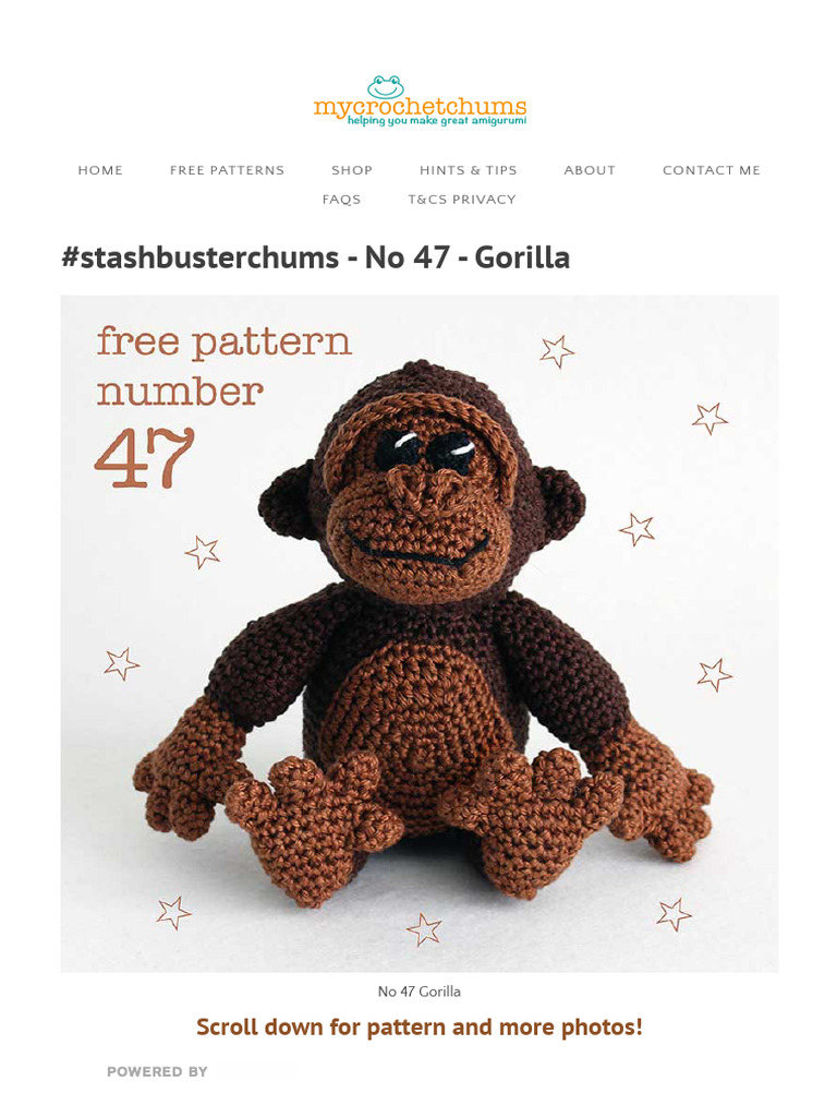The Gorilla is made of multiple separate pieces sewn together. Unless otherwise stated, finish each